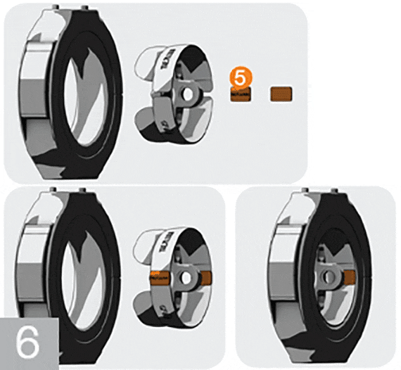 Assemble the "clamp clip" (2) on axis 6 of the robot and then the adjustable triflex® R mounting bracket