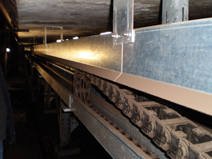 Handling facilityCole is transported in this handling facility over a distance of 200 meters. Strong pollution and coal dust were responsible for defects at the energy chain and the inserted cables in the past. This problem could be eliminated by the use of insensitive igus® e-chains® and increased the availability of the handling facility.